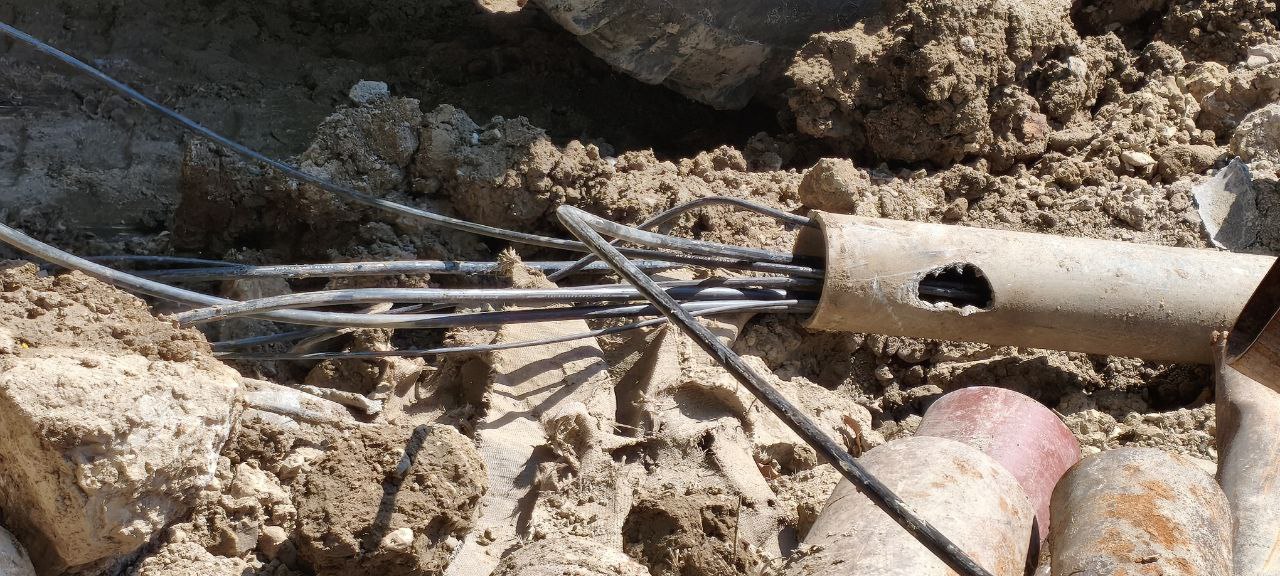 Обрыв произошёл в результате работ строительной техники (экскаватор/трактор) на участке магистрали.