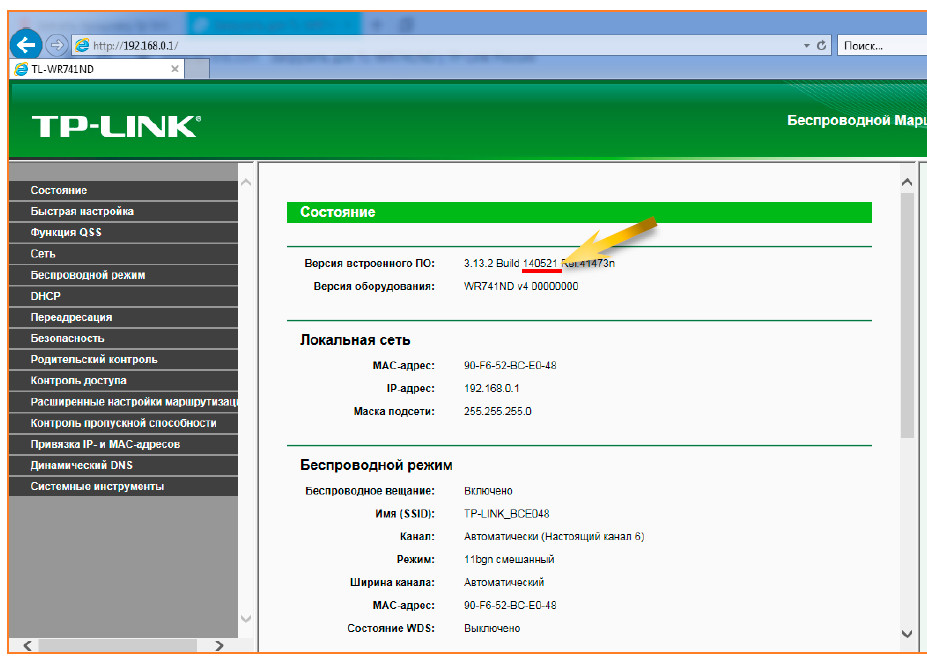 После прошивки заходим в настройки роутера и убеждаемся в том, что установилась новая версия прошивки 140521.
