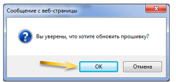 Далее нужно подтвердить действие по обновлению прошивки нажав кнопку «ОК».