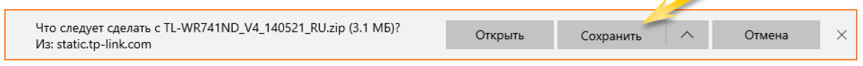 При нажатии на ссылку последней версии прошивки, браузер предложит нам ее сохранить к себе на диск, выбираем «Сохранить».